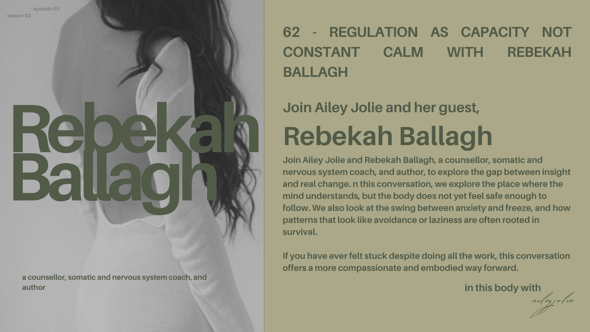 In this episode, Iām joined by Rebekah Ballagh, a counsellor, somatic and nervous system coach, and author, to explore the gap between insight and real change. The place where the mind understands, but the body does not yet feel safe enough to follow.
